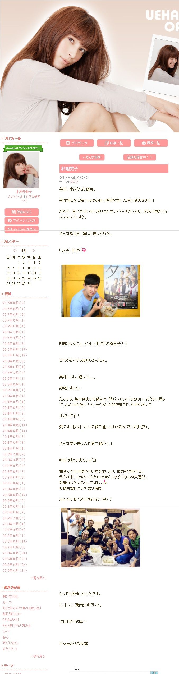 舞台「音楽喜劇 のど自慢~上を向いて歩こう~」の初日。10日発売の週刊誌「女性セブン」で、TENNさんの遺族が自殺の端緒について、上原の不倫を明かしてから初の公の場。 上原が舞台に登場すると、一瞬客席がざわつく場面があったが、その後は観客も舞台に引き込まれ、上原もピンク・レディーの「UFO」の振り付けを元気いっぱいに披露するなど、6~7月の東京、神戸公演と変わることなく演じた。カーテンコールでも観客の拍手に笑顔で応えた。