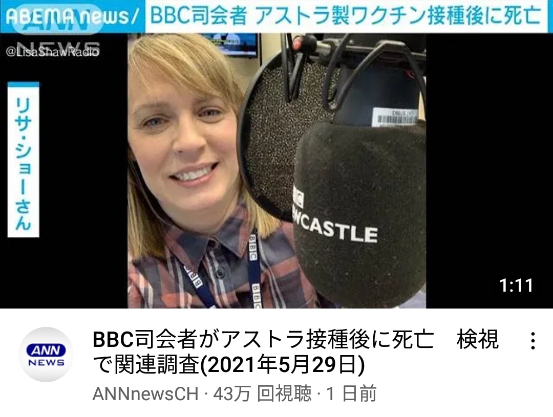 【悲報】BBC司会者(44)、アストラゼネカ製ワクチン接種後に死亡
