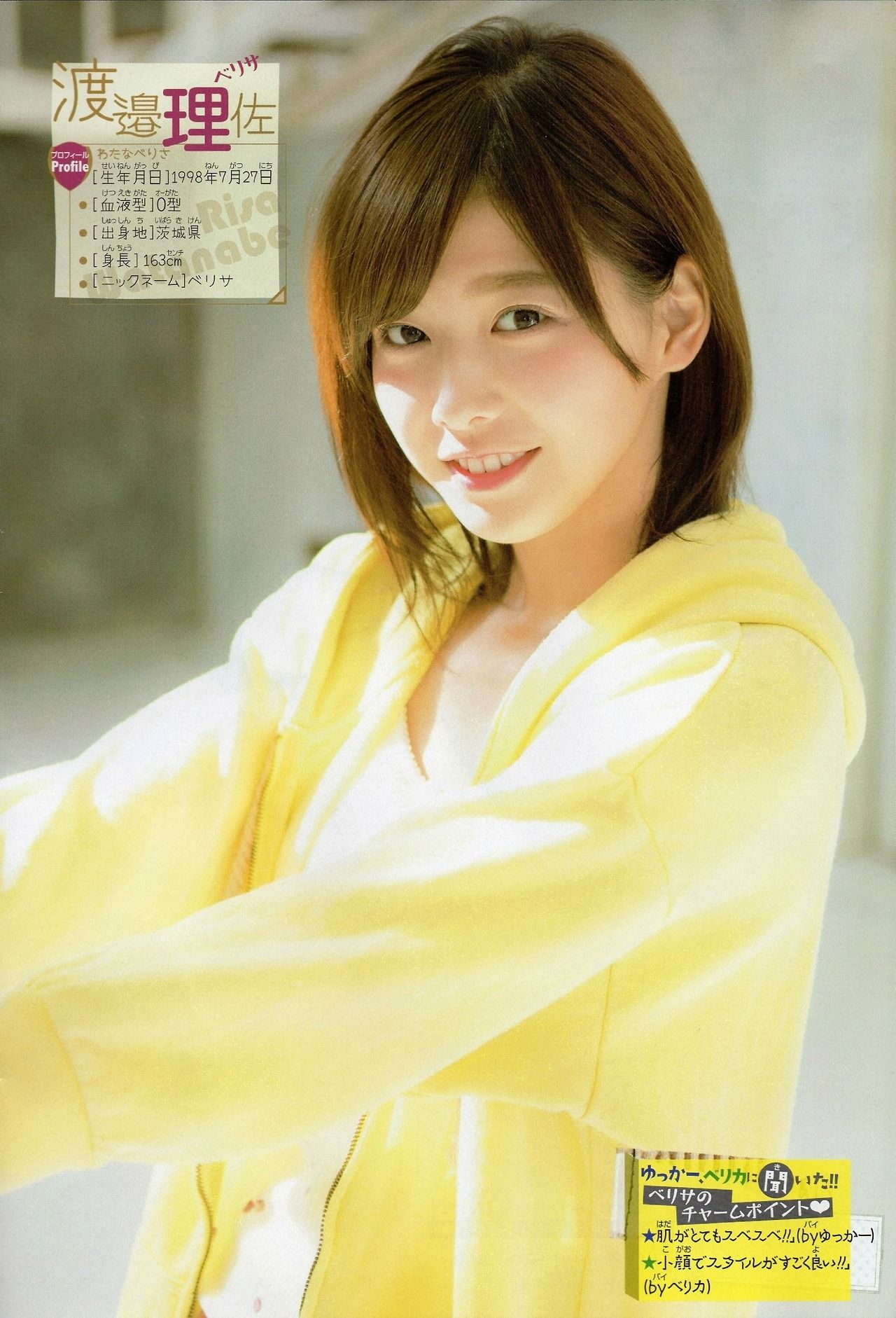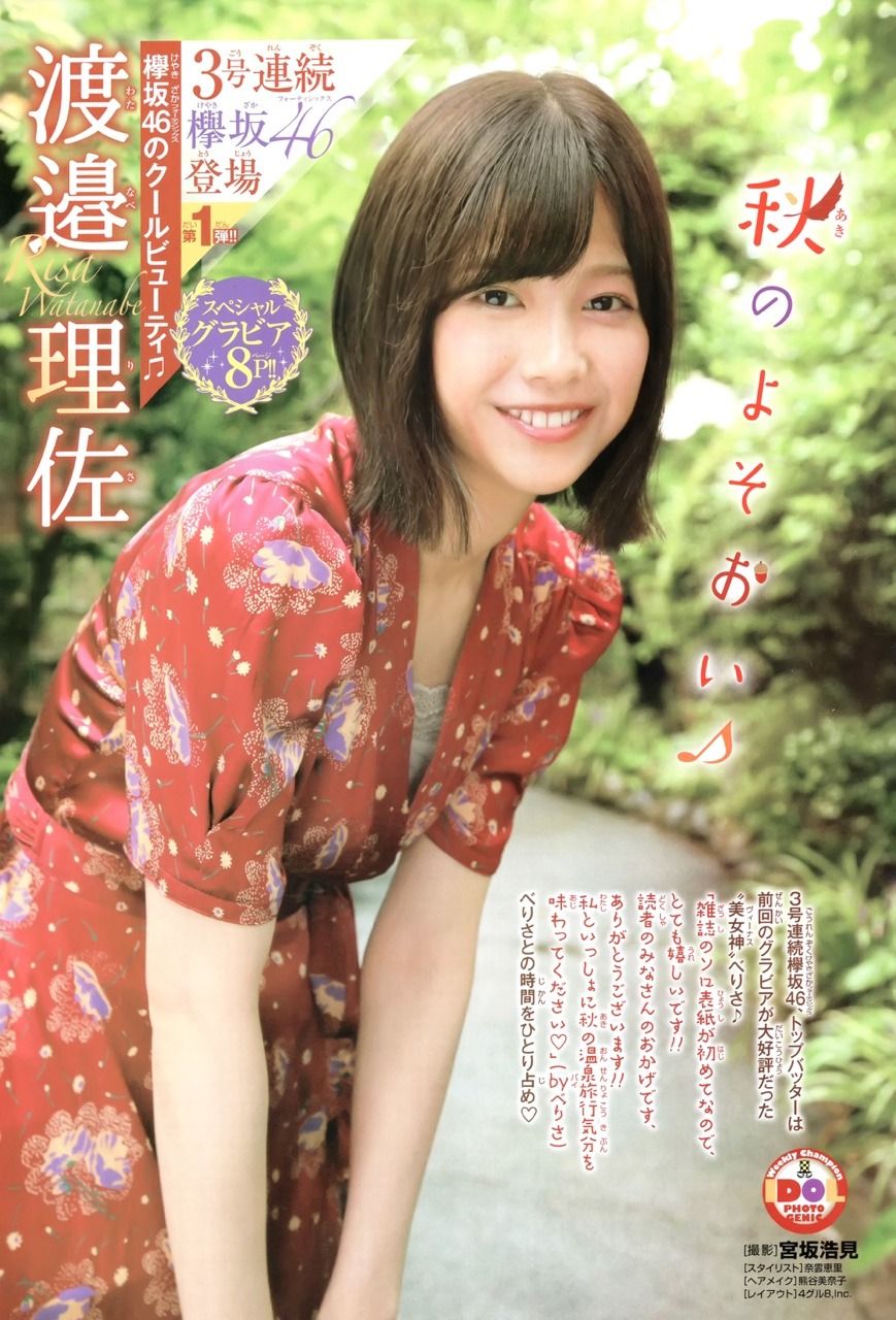 | 渡邉 理佐(わたなべ りさ、1998年7月27日 - )は、日本のアイドル、ファッションモデルであり、女性アイドルグループ欅坂46のメンバー、『non-no』の専属モデルである。茨城県出身。ソニー・ミュージックレーベルズ所属。166cm。血液型O型。 1998年7月27日、茨城県で生まれる。小学生 24キロバイト (3,105 語) - 2018年11月6日 (火) 05:48 |