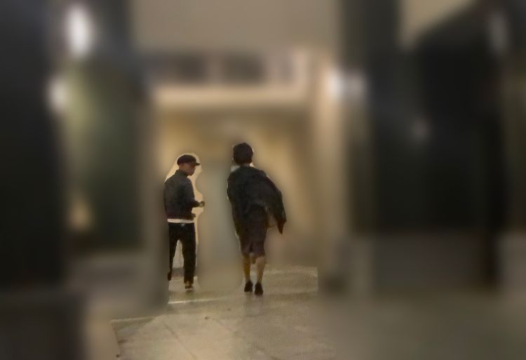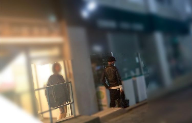 他に人がいないことを確認すると、彼は女性に手招きをし、やっと二人は合流。