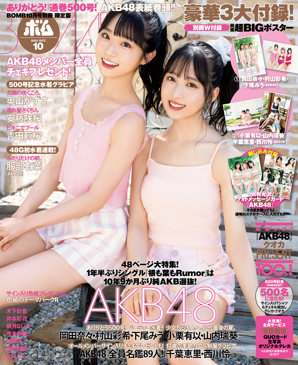 同号ではAKB48を48ページで大特集。表紙は岡田奈々、村山彩希、下尾みう3人が飾り、小栗有以&山内瑞葵と千葉恵里&西川怜のペアグラビア、さらにAKB48メンバー89人全員名鑑も掲載し、メンバー全員のサイン入りチェキのプレゼントも実施する。