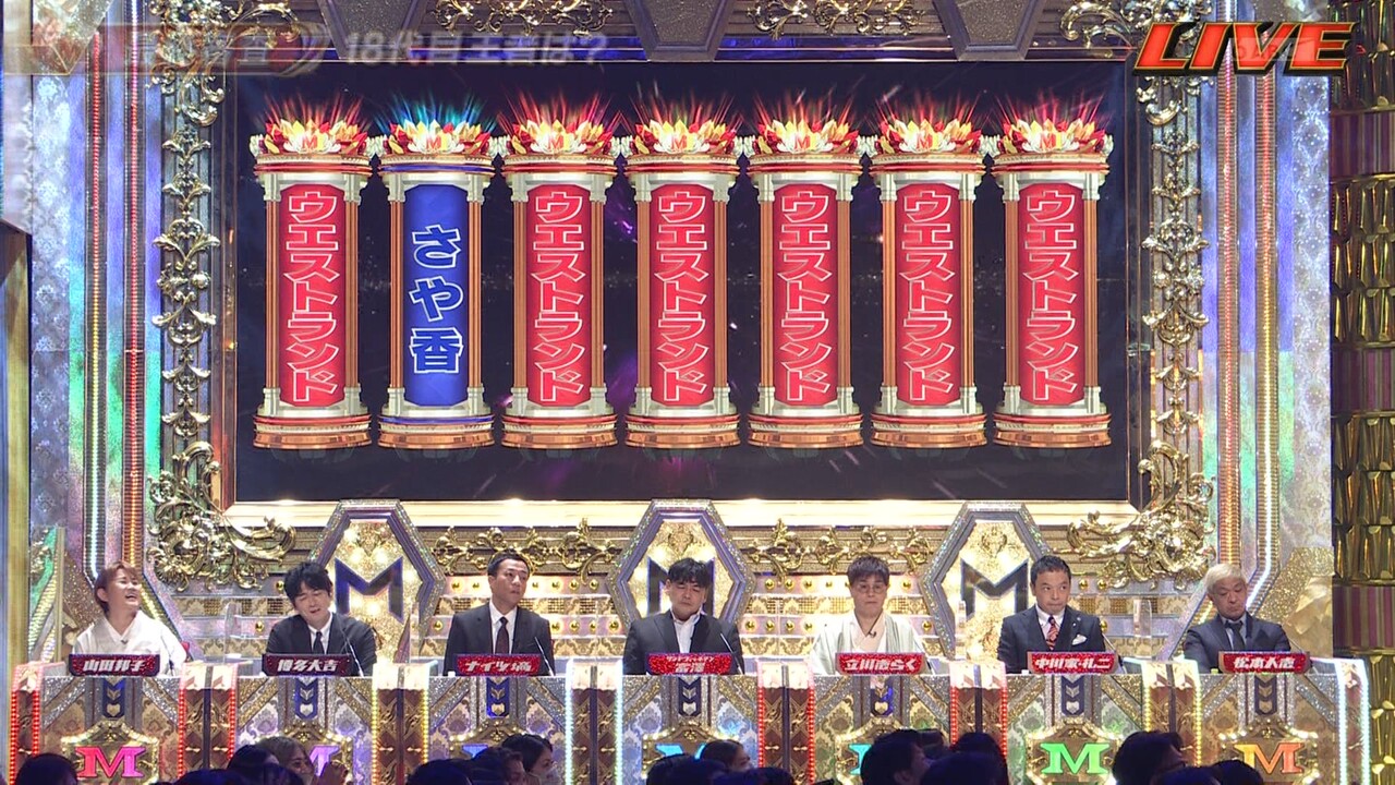 山田邦子/松本人志(ダウンタウン)/立川志らく/博多大吉(博多華丸・大吉)/礼二(中川家)/富澤たけし(サンドウィッチマン)/塙宣之(ナイツ)