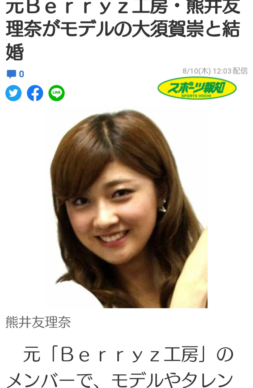 モデルでタレントの熊井友理奈が10日に自身のSNSを更新し、モデルの大須賀崇と結婚することを発表した。