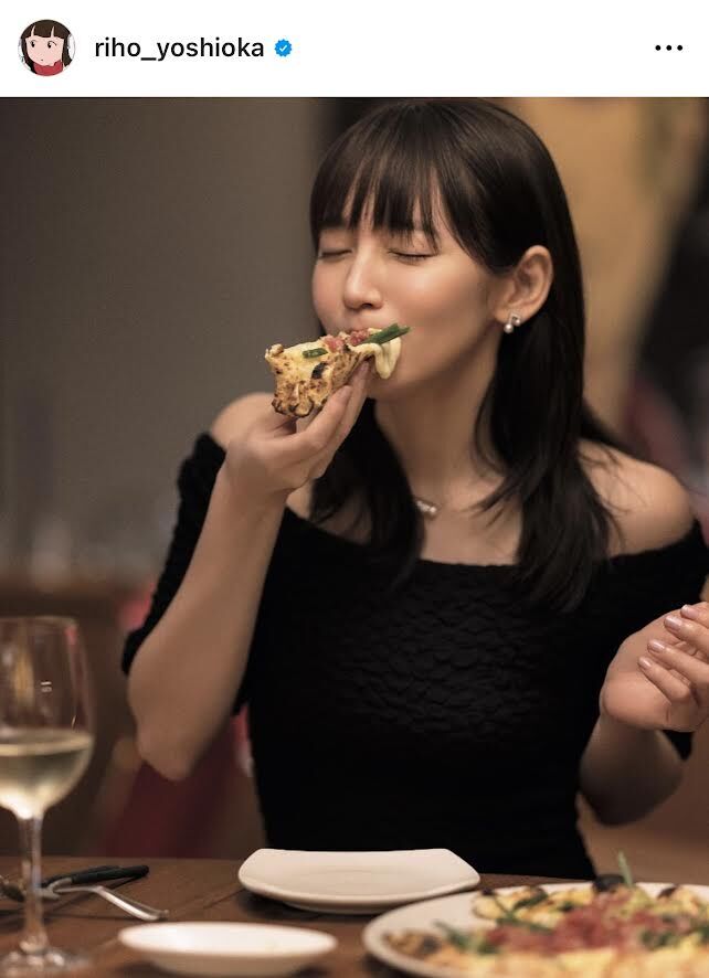 吉岡里帆、デコルテあらわな黒ワンピ姿でピザをパクッ!「綺麗すぎて言葉が出ません」と絶賛の嵐