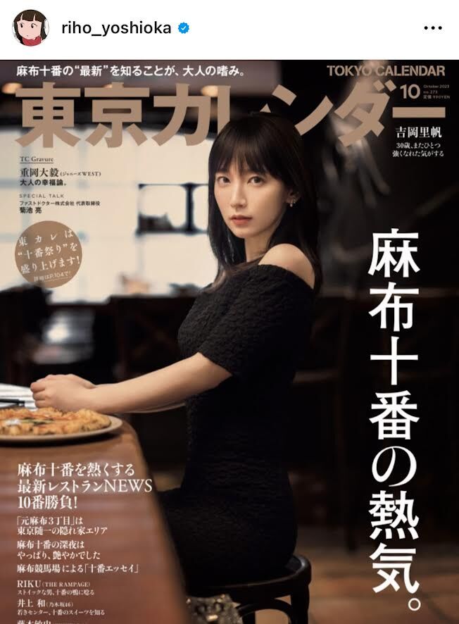 女優の吉岡里帆が23日までに自身のインスタグラムを更新。雑誌「東京カレンダー」の表紙を務めることを報告した。