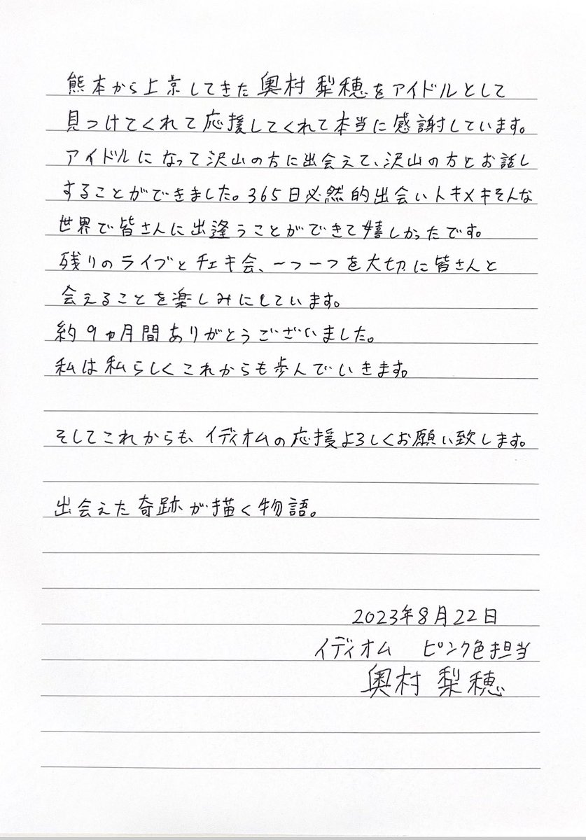 — 奥村 梨穂【IIIIIIIDIOM】 (@riho_idiom) August 19, 2023