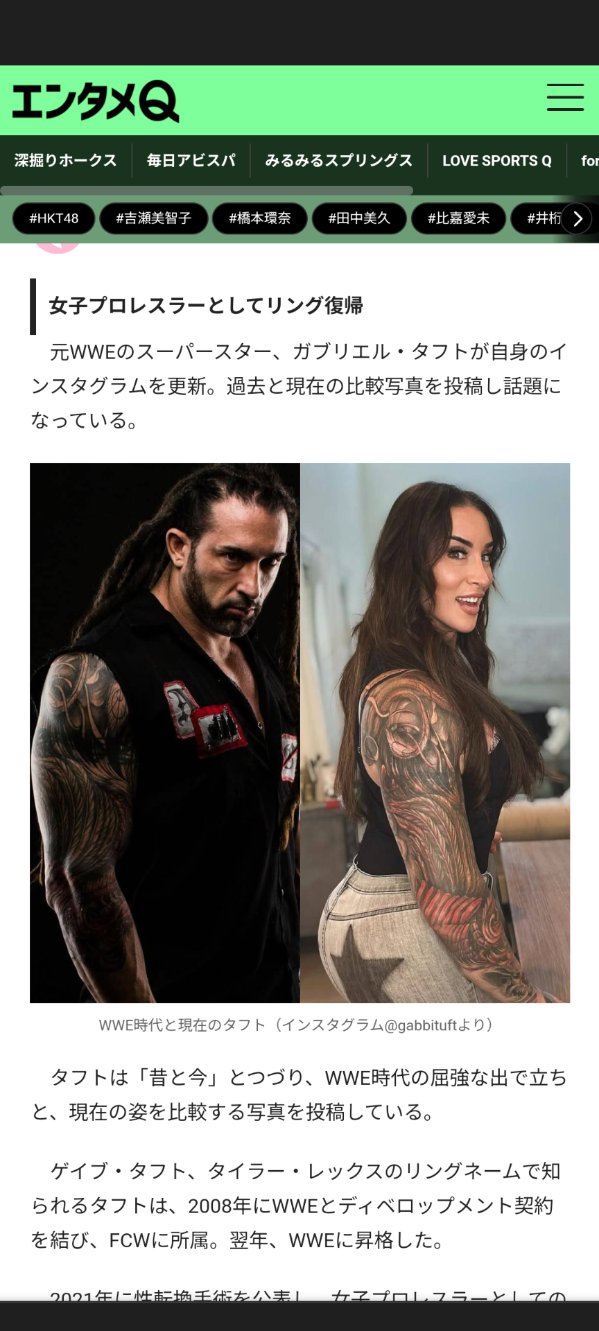 性転換手術を公表した元WWEスター、タイラー・レックス(ガブリエル・タフト)さん、現在の姿が「輝いている!」と話題!の記事