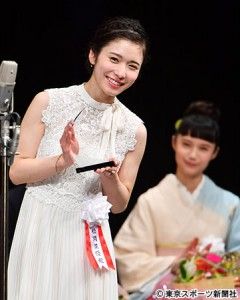 同賞は女優の故山路ふみ子さん(享年92)が創設。その年に発表された作品に対し、国内の映画賞レースの中で最も早く表彰することで知られる。 宮﨑は「怒り」で山路ふみ子女優賞、松岡は「猫なんかよんでもこない。」「ちはやふる」で同新人女優賞を獲得した。