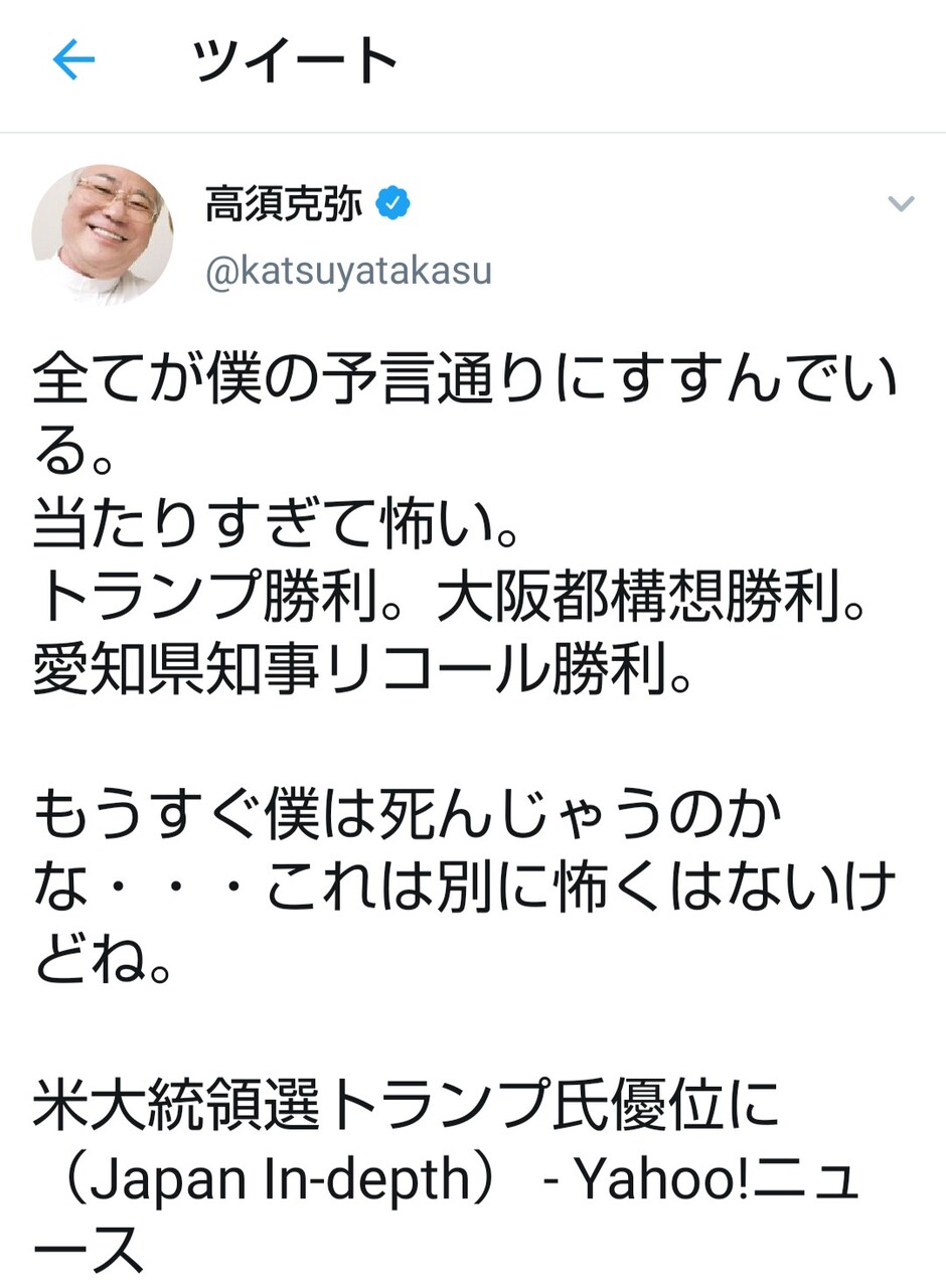 高須克弥さん「全てが僕の予言通りにすすんでいる。 当たりすぎて怖い。」